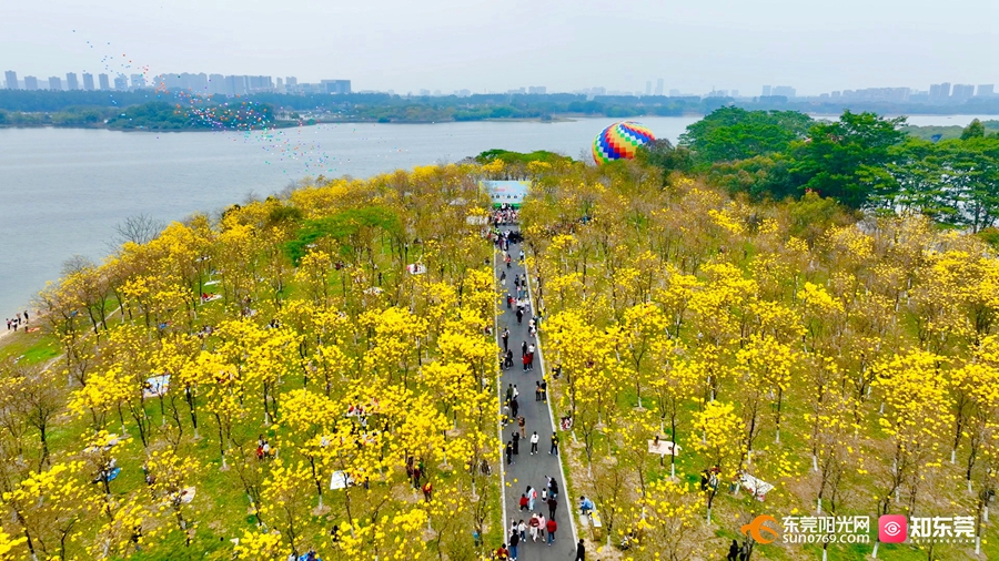 2月22日,湾区周末in东莞“朝花暮赏 人比花骄”松山湖第三届赏花月活动如期开幕,本届活动将持续到3月中旬。自2023年起,借助黄花风铃木绽放的盛景,松山湖已成功举办两届赏花月活动,成为广大市民朋友每年期待的一场视觉盛宴。这不仅是一次自然之美的展示,更是一场文化与自然交融、传统与创意碰撞的文旅盛会。