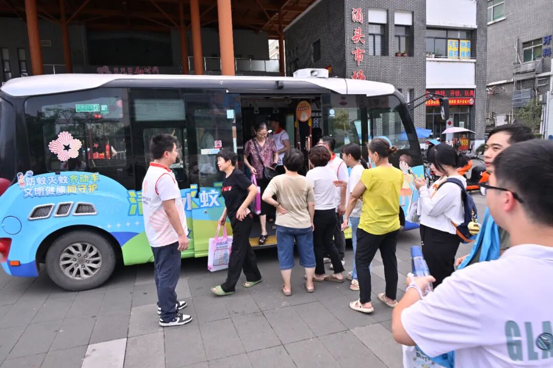 宣传巴士每日分片区、网格化行驶,覆盖全镇15个社区主要道路及人流密集区域。车内不仅循环播放双语防蚊广播,还滚动播出“七天七招”防蚊小课堂视频,将宣传场景嵌入市民日常生活,有效提升了群众参与感和获得感。