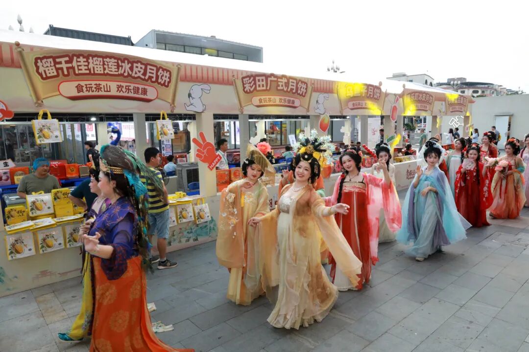 9月27日,“赏秋月·吃茶山”2025茶山镇山海经中秋之夜活动在茶山商圈乐融荟精彩上演。活动融合月饼品牌展示、中秋特色猜灯谜、中秋雅集赏鉴、国风民乐团表演、DIY手工艺体验、国风汉服巡游表演、茶话会直播等多种形式,线上线下联动,让市民沉浸式感受中秋传统文化的魅力。同时充分展现了茶山作为中国食品名镇的产业特色、文旅资源以及本土月饼品牌的独特风采。