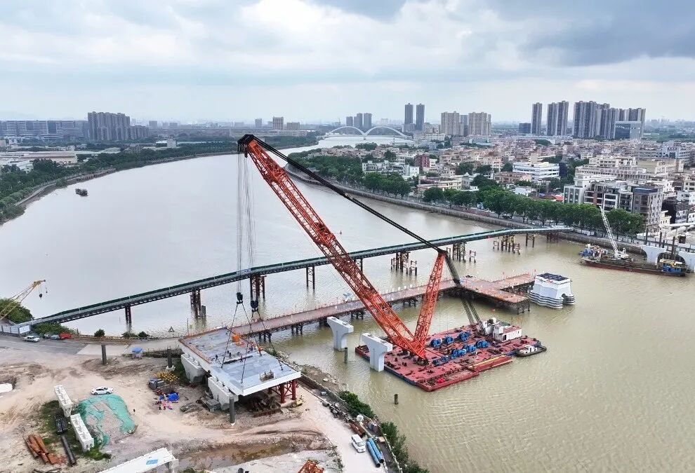 洪梅大桥“蝶变”加速!首节钢箱梁精准落位
