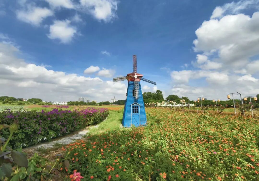 七彩花田种植了醉蝶花、格桑花、百日草、硫华菊等花卉,不妨来“桥”一“桥”吧,每一种鲜花都有着各自的颜色,给予你不同的色彩能量。