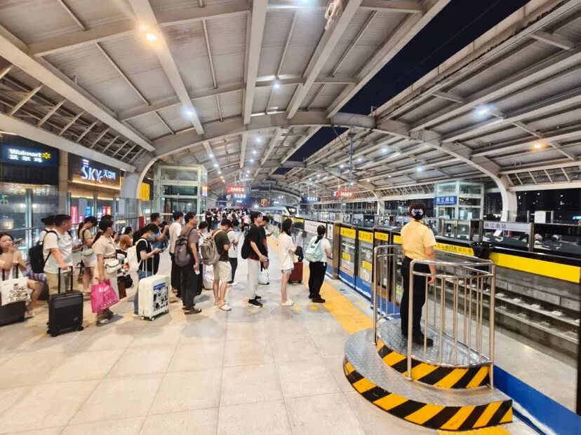 为高效应对双节假期激增客流,广东城际通过运力提升与服务强化双措并举,全力保障旅客出行顺畅。当日实时监测客流情况,城际铁路组织备用动车组上线疏导客流,在开行406列次载客列车的基础上累计加开33列次,总开行列数达439列次。