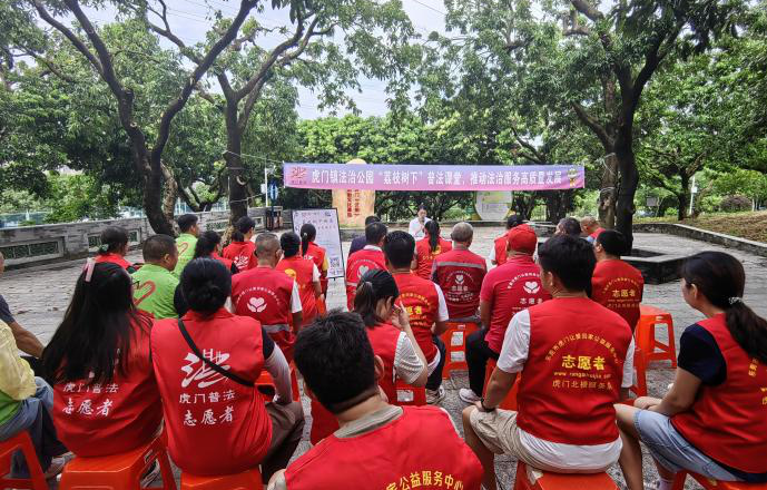 寓教于景,法治精神融入自然 培训聚焦新修订的《中华人民共和国治安管理处罚法》,同时也针对《中华人民共和国法律援助法》、《中华人民共和国劳动法》、《中华人民共和国劳动合同法》等重点法律法规进行宣讲,打破传统会议室教学的局限,将培训搬到绿荫树下的公园之中,让志愿者们在轻松的环境中更能将知识收入“囊中”。 专业解读,提升志愿服务专业性 虎门司法分局邀请到北栅社区法律顾问钟妍彦律师普法授课,现场除了针对本次重点培训的法律法规外,内容结合生动案例,设有解惑问答环节,同时围绕青少年、长者、劳动者为主的权益保护展开叙述,重点从维护公共秩序、保护公民人身财产安全、化解社会矛盾、突发事件处置等方面进行细致剖析,为志愿者提供了实用的法律指引。 成效显著,法治信仰植根心田 该系列培训形式新颖、内容扎实、指导性强。“在这么轻松的环境里学习,感觉法律条文都不再枯燥了,钟律师讲得特别透彻,也有案例及提问解答环节,让我们知道以后在志愿服务中遇到具体情况该怎么依法处理,心里更有底了!”一位普法志愿者骨干玲姐开心地分享道。