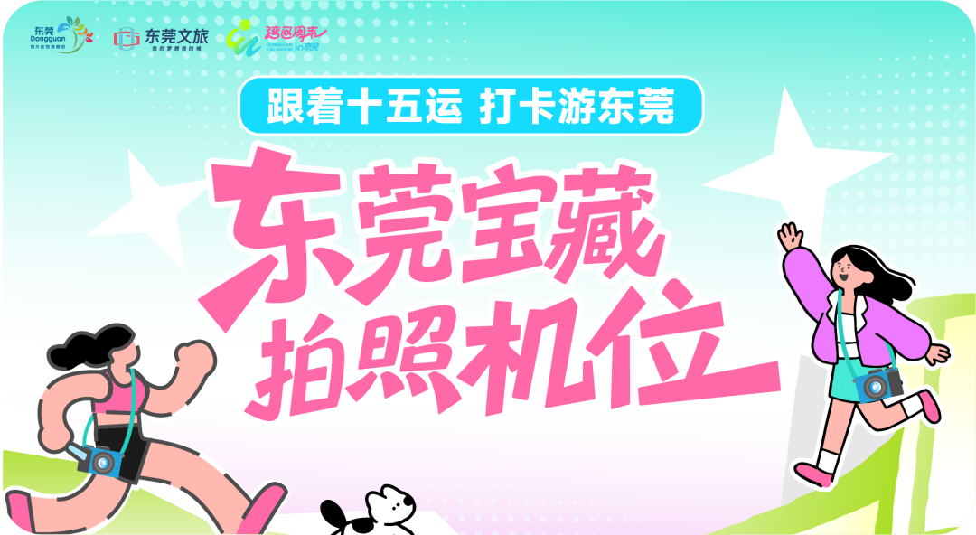这么多丰富的周边好礼,还在等什么?赶紧约上拍照“搭子”跟着十五运,打卡游东莞,参与「东莞宝藏拍照机位」,趁着假期来一场城市Citywalk,探索快乐有趣的宝藏之旅!