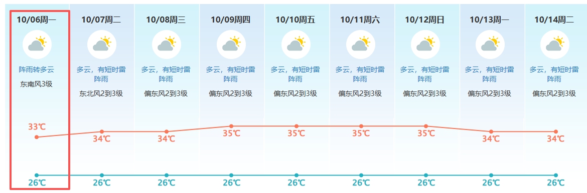 预计我市受台风“麦德姆”外围环流影响,5日傍晚到夜间阴天到多云,有阵雨,并伴有6到7级阵风;中秋节(6日)阵雨转多云,夜间可见月光;展望7—13日多云,有短时雷阵雨。
