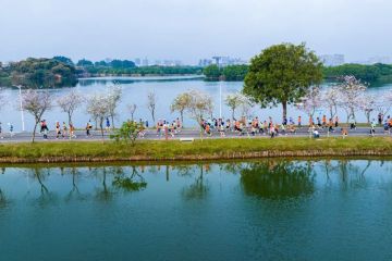 在"剧情步道"环节,古风NPC沿西湖畔讲述旗峰历史故事,市民们围拢在NPC身边,认真聆听,并积极完成互动任务收集印章。“太有意思了,像是在玩一场大型实景剧本杀,还能了解黄旗山的故事。”带着朋友来游玩的市民李小姐兴奋地说。