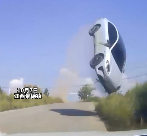 景德镇一汽车下坡时突然“起飞”,警方介入调查