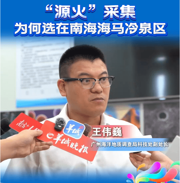 10月9日,十五运会和残特奥会火种采集仪式在广州南沙科考码头举行。“源火”采集为何选在南海海马冷泉区?广州海洋地质调查局科技处副处长王伟巍表示,海马冷泉是从海底喷涌的一种流体,它的主要成分是水、烃类物质(甲烷)以及少量硫化氢气体,目前海马冷泉是地球上规模最大的活动性冷泉。可燃冰与冷泉区域是共生共存的,可燃冰为冷泉提供物质供给,同时可燃冰分解成甲烷后形成物质上涌,只有这种带有奇观性的区域才能获取可燃冰。通过冷泉可以将可燃冰的气态液态、气液共存的现象清晰展现,这更利于“源火”的采集。