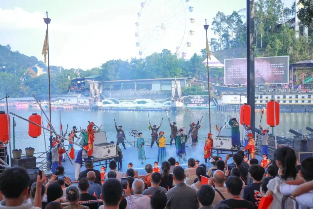 “双节”假期,东莞隐贤山庄连续8天推出“无人机·瀑布烟花贺国庆”活动,配合大型全景特效秀《林则徐1839》、限定版“古风炫彩大巡游”、机器狗迎宾秀等精彩节目,让游客解锁多种欢乐互动玩法。假期期间,该景区累计接待游客超6万人次,带动酒店、餐饮、景区内项目消费明显增长。