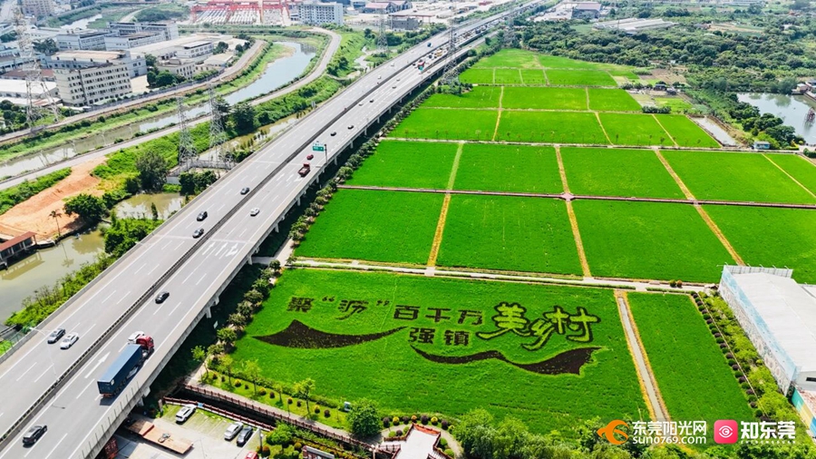 稻田画以绿色为主基调,红色飘带宛如乡村发展的脉络,顺着田垄串联起美好愿景;黄紫交织的文字则色彩鲜明、醒目亮眼。如今,横沥正借“百千万工程”的东风,以党建为引领,朝着强镇目标阔步迈进。