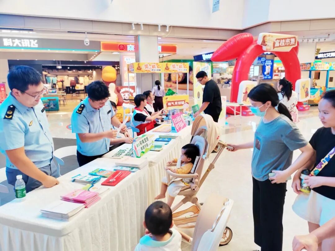 活动中,工作人员向过往群众派发东莞市“全域文明迎全运”倡议书、《东莞市文明行为促进条例》、特殊食品经营行为规范指导手册等资料,详细讲解文明有礼、食品安全法律法规相关知识,倡导市民践行“文明观赛”“文明餐桌”“文明旅游”等文明风尚,实现“文明素养+食品安全”双向赋能。