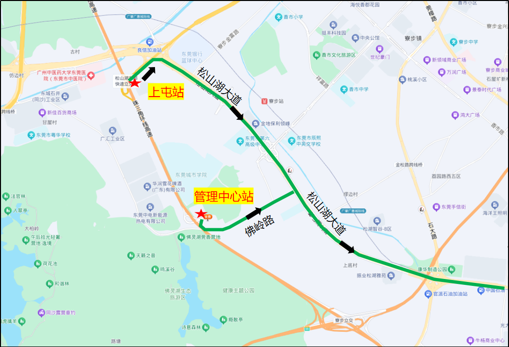 往大朗、黄江、塘厦方向:可提前从莞深高速上屯站、管理中心站下高速,经松山湖大道绕行至大朗、黄江、塘厦。