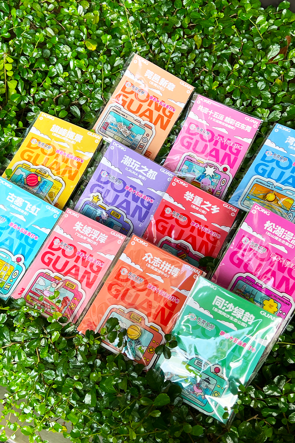 完成小红书笔记发布后,在打卡机位的对应兑奖点集贴纸核销,即可兑换限定周边(玩“转”东莞冰箱贴)。