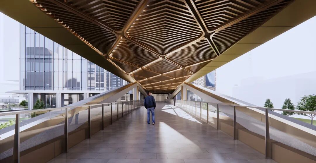 根据《首开区空中连廊统筹研究》,东莞CBD的连廊在功能上各有侧重:有位于次干道、兼具形象展示的“形象功能型”;有以高效连接为主的“通过型”;还有补充地面活力、营造休闲氛围的“空中花园型”。