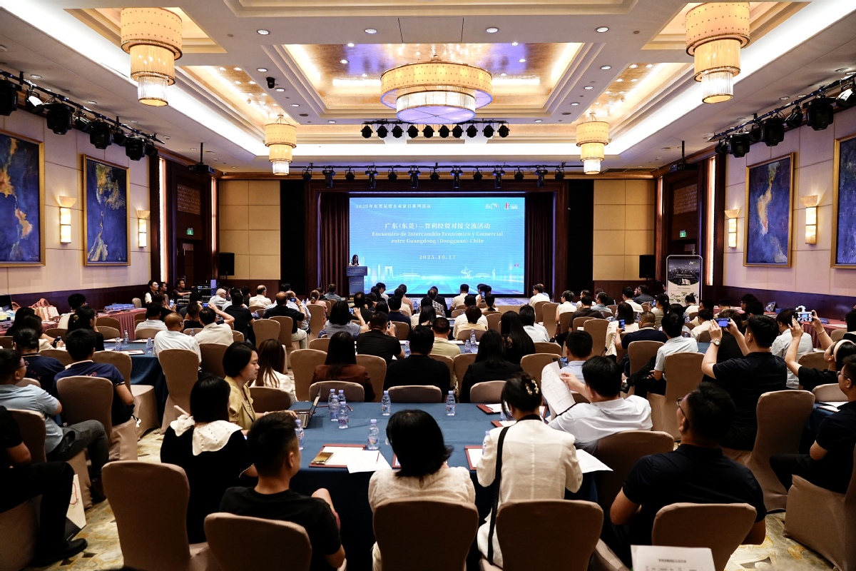 10月17日上午,广东(东莞)—智利经贸交流活动在东莞塘厦镇举行。本次活动由东莞市商务局联合市工商联、市贸促会、市侨联共同主办,吸引了智利圣地亚哥商会带领的32人采购代表团,以及东莞约60家对口企业参与。本次活动也是“2025年东莞民营企业家日系列活动——海外协作交流活动”之一,助力我市民营企业家扩大海外“朋友圈”、开拓境外市场。