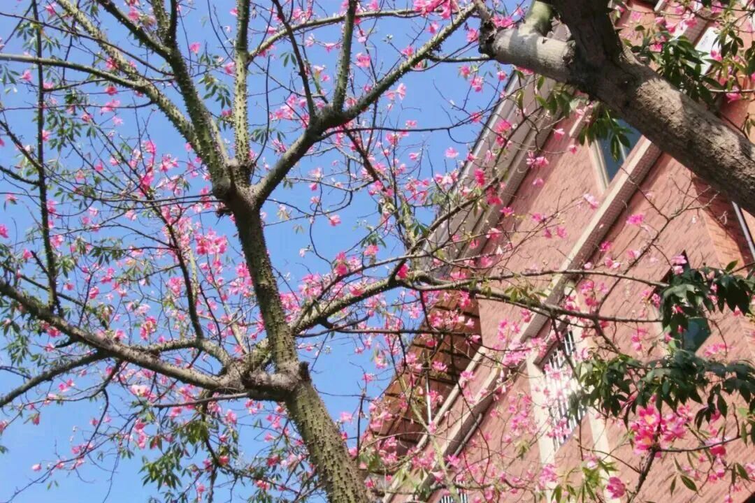 满树粉黛,甜到心窝,在周围一片绿叶丛中格外显眼,犹如倒放的春天,引得无数游客纷纷打卡。
