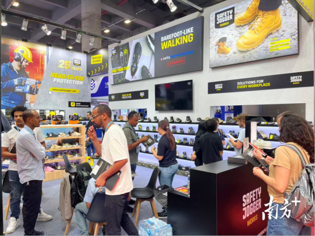 安东尼此行目标明确——为他家乡金矿的安保团队采购一批高质量的安全鞋。“对于我们而言,产品的可靠性和保护性至关重要,价格并非唯一考量。”安东尼告诉记者,葛天那的展台设计专业,产品陈列清晰,第一印象就让人信赖。