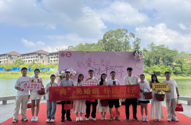 10月16日上午,企石司法分局联合镇公共服务办、婚姻登记处,在东青湖湿地公园举办了一场别开生面的“典”亮婚姻 伴民同行主题活动。活动以绿色集体婚礼为载体,融合普法宣传与文明婚俗倡导,吸引了六对新人及其亲朋好友积极参与,企石村一村一法律顾问邓颖琪律师也受邀到场提供专业法律咨询服务。