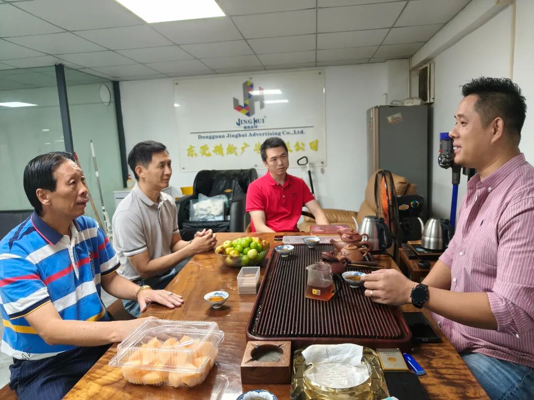 在2025年东莞民营企业家日即将到来之际,为表示对民营企业家的关怀与支持,近日,横沥镇工商联(商会)组织前往东莞精绘广告有限公司开展退伍军人民营企业家人文关怀走访活动。横沥镇工商联(商会)代理主席(会长)吴锐文,副主席(常务副会长)邓满钦,镇统战办党支部委员吴亮斌,以及商会秘书处一行参与了本次活动。