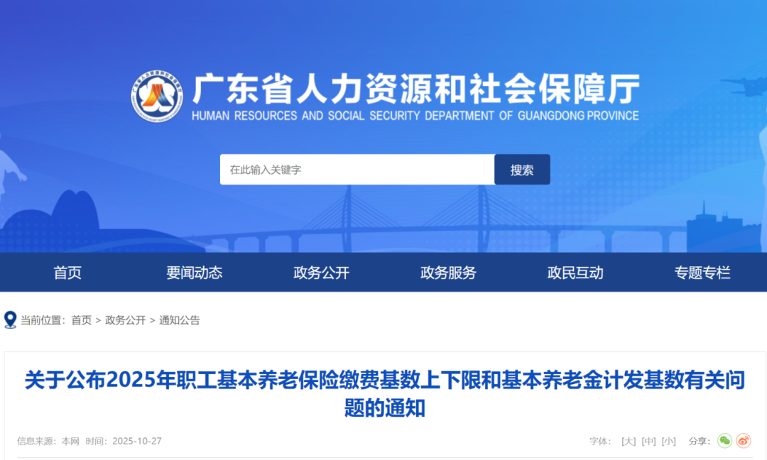 10月27日,广东省人力资源和社会保障厅发布了最新通知,公布了2025年职工养老保险的重要调整。
