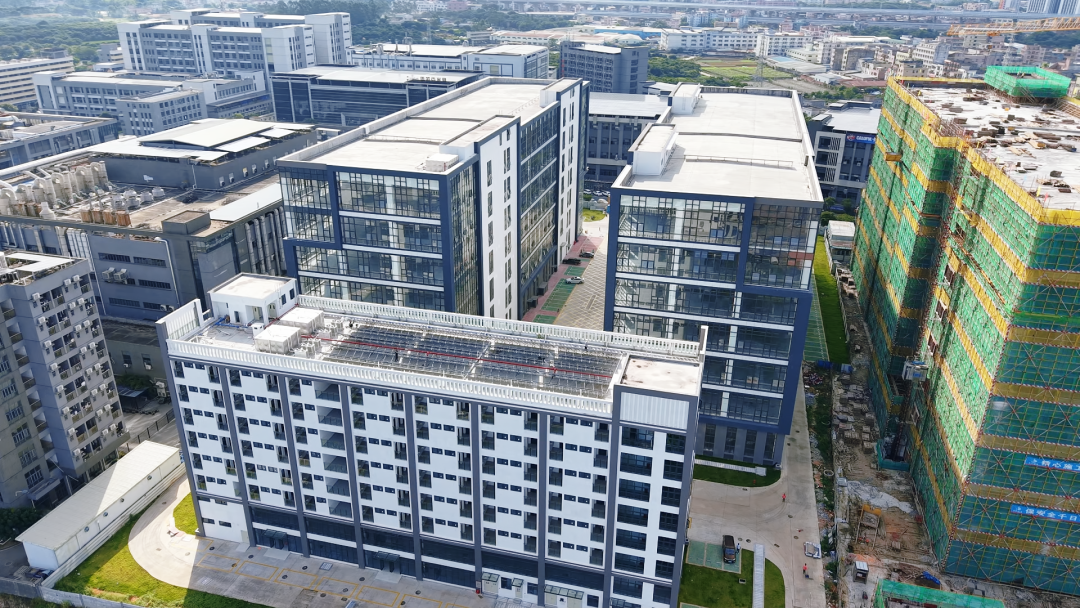 当前,随着工程节点的有序推进,产业园的实景风貌也逐渐清晰。园区建筑群已初具规模,灰白色调的外墙舒展大气,正立面的玻璃幕墙在引入自然光的同时更彰显出园区的科技感与时代特色。园区内,高标准厂房、宿舍、配电房等配套设施一应俱全,未来入驻企业可实现办公、研发、生产及员工生活的“一站式”解决。