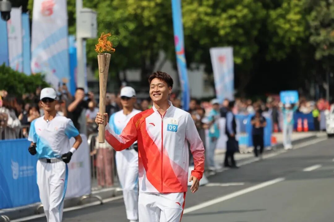 作为中国男篮队长、即将代表广东在东莞出战十五运会篮球男子成年组争夺的赵睿,作为广州站68位火炬手之一,在第9棒完成了这项光荣使命。
