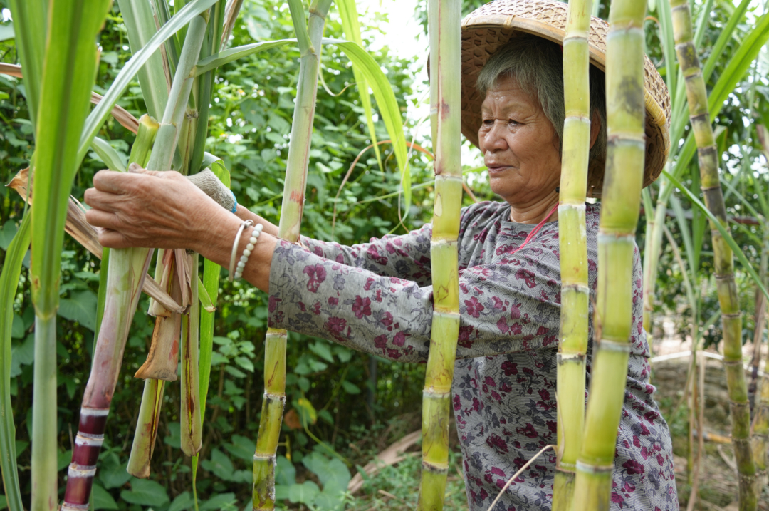 从孩童时期到如今年过花甲,李阿姨照料甘蔗就像照顾自己的孩子,浇水、施肥、除草都亲力亲为。“今年雨水足,甘蔗能长到三米高,汁水特别多。”抚摸着粗壮的甘蔗,她的眼中满是欣慰。
