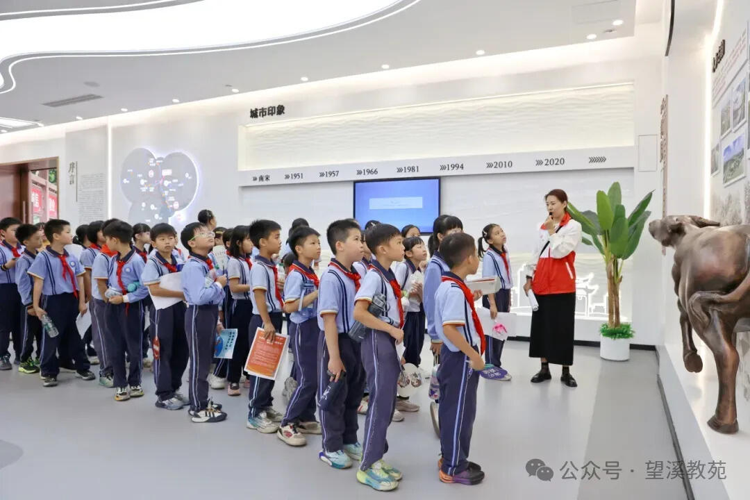 望牛墩镇深挖本土红色资源,将镇委党校、城市会客厅、革命烈士纪念碑、县委机关旧址等红色打卡点纳入校外活动课程体系,编制《望牛墩镇红色研学地图》。各学校组织4—8年级学生走进红色教育基地,通过讲解员现场授课、历史场景还原、红色故事分享等形式,开展沉浸式爱国主义教育。活动前设计有针对性的学习任务,活动后通过征文、演讲等形式巩固学习成果,引导学生在行走中感悟红色精神。
