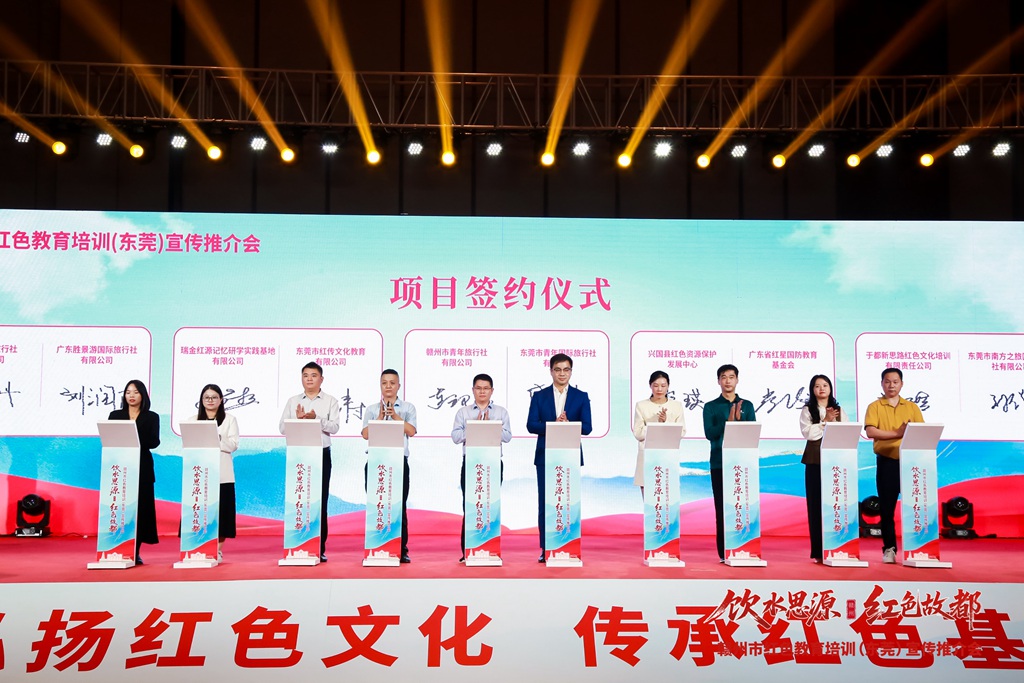 推介会上,赣州与东莞多家机构签署了红色教育培训战略合作协议,涵盖研学旅行、综合实践、文化培训等多种业态,预计招学引学总量将超过3万人次。合作项目覆盖瑞金、于都、兴国、寻乌、崇义等重点红色区域。