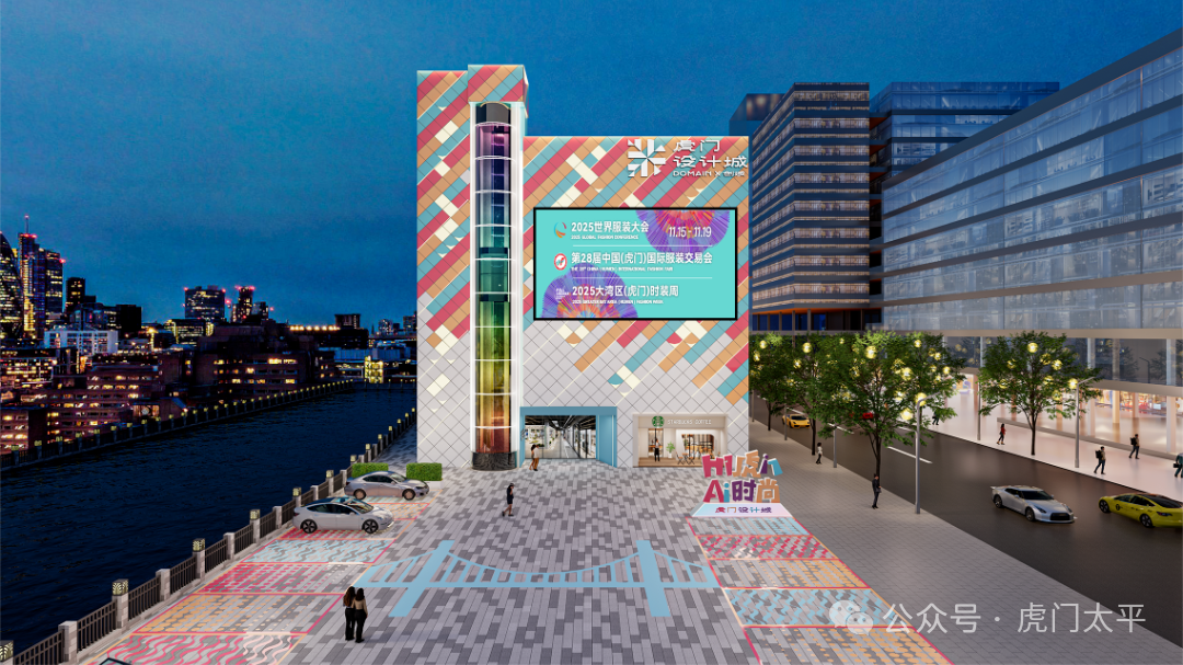 虎门设计城由富民百家商场升级改造而成,以“HI虎门,AI时尚”为理念,集全球趋势发布、AI创意生成、智能精益制造、原创作品展览与高端人才孵化等功能于一体。