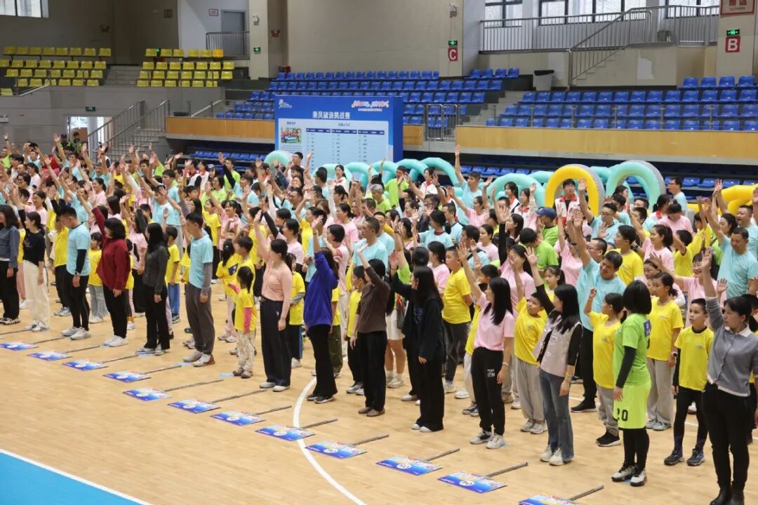 致辞结束后,运动员与裁判员庄严宣誓,总教练随即带领全体参赛家庭开展赛前热身。