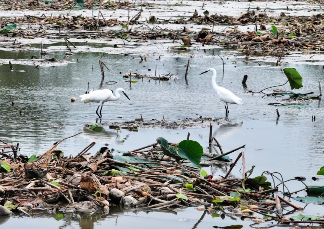 荷塘以藕报辛勤,白鹭以舞赠秋色。