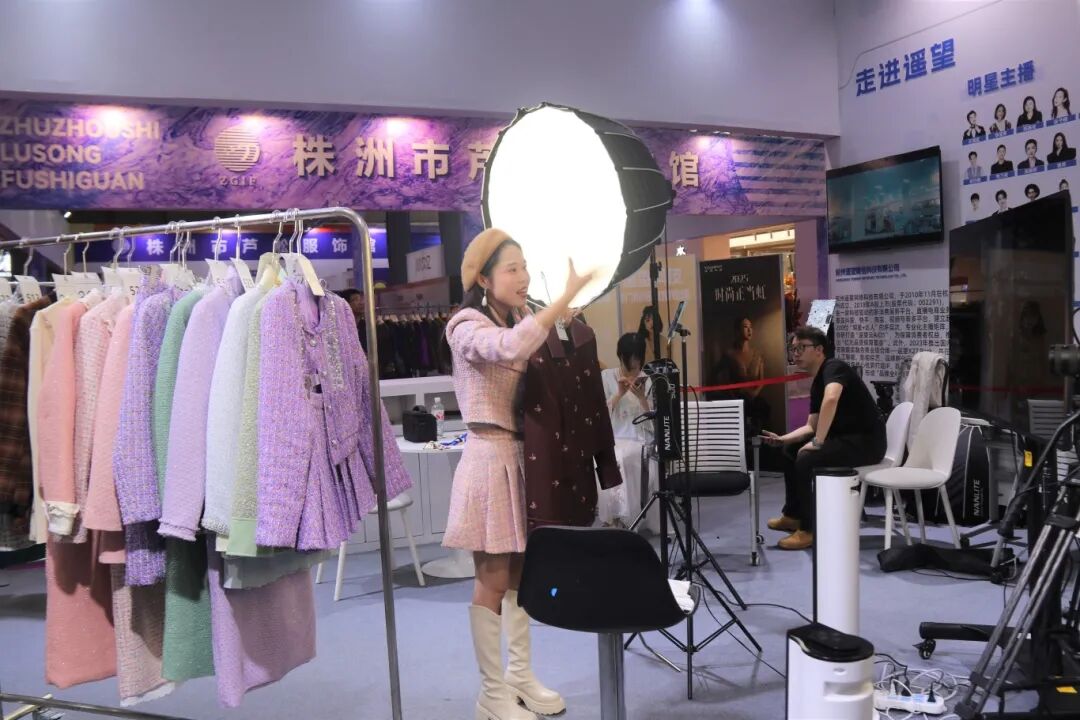 随着虎门“三会” 的深入推进,主展馆热闹非凡,成为供应链、贸易洽谈、设计研发的一站式对接平台,进一步彰显了服装服饰发展的多元业态与未来趋势,其中“遥望”直播,携多位流量大咖来到主展馆,进行网红直播带货。