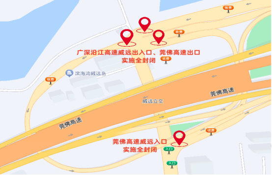 11月23日5:00至12:00,莞佛高速威远出入口、广深沿江高速威远出入口进行临时全封闭。