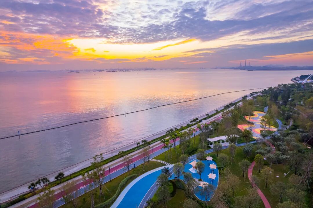 海风轻拂过黄金海岸,骑行道沿着海岸线舒展,行人踏着余晖缓缓前行,看云卷云舒,岁月静好。