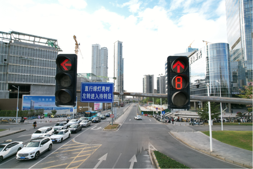 左转待转区是设置在路口停止线以外的区域,供左转车辆在直行信号灯亮起时可以进入的等待转弯区域,其作用是提高车辆左转效率,进一步提高路口的通行效率。