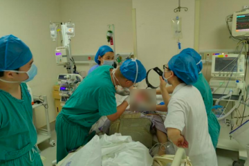 凌晨2时16分,团队紧急为其行气管插管,接呼吸机辅助通气。
