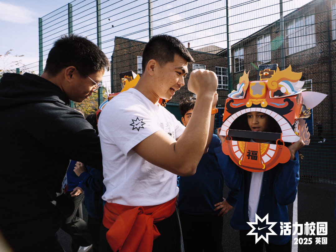 在伯明翰小学,孔泽钦老师的课从让孩子们直接触摸狮头、感受重量开始。“狮头体验环节一开始,孩子们的好奇心就被点燃了,”孔泽钦回忆道,“他们踮着脚摸狮头的鬃毛,追问它的象征意义,争先恐后地想尝试举起狮头。”他摒弃了最初“先讲后练”的设计,转而采用“文化破冰-动作传艺-创意赋能”的全新流程,带领孩子们玩“狮子抓羚羊”,现场笑声、鼓声、脚步声汇成一片,英国学生在纯粹的“玩”中,自然而然地领悟醒狮步法的协调与团队配合的默契。