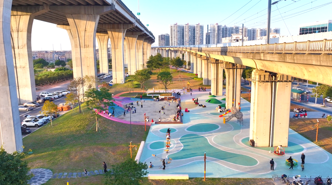 以桥底儿童公园为样本,沙田正系统推进“一桥一策”改造计划,通过多元化运营、管养维护、优质资产注入等方式,将曾经闲置杂乱桥下空间从“脏乱差”的管理黑点,转变为城市发展的“金角银边”,推动城市空间品质实现质的飞跃。