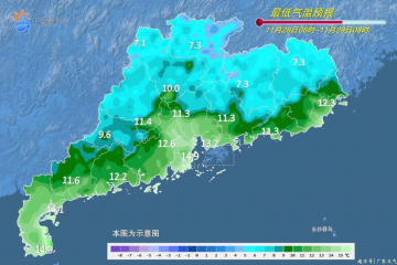 11月30日,中南部市县阴天间多云,有小雨,其余市县多云到阴天,局部有小雨。最低气温:粤北、云浮、珠三角北部和粤东市县6~12℃,珠江口附近和粤西沿海市县17~19℃,其余市县12~17℃。