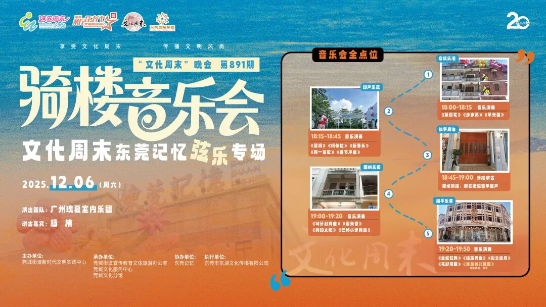 本场演出走出剧场,走进街区,登陆东莞记忆骑楼阳台,以经典曲目为脉络,结合东莞记忆历史沉浸叙事,打造一场听得见的城市记忆、看得见的美学体验,在建筑与音乐的对话中唤醒久违的浪漫。