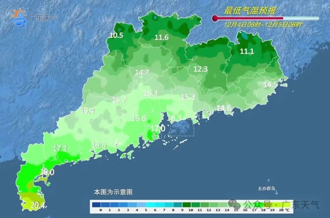 4-5日,粤西阴天有小雨,其余市县多云为主,局部有零星小雨。最低气温:粤北大部、珠三角北部市县6~11℃,雷州半岛18~20℃,南部沿海其余市县14~17℃,其余大部分市县11~13℃。