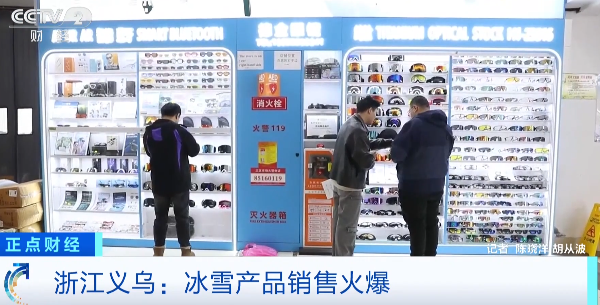 在浙江义乌国际商贸城三区,一位外国采购商正被陈列着上百款滑雪镜的展柜吸引。在与店主交流后,他果断采购了一批样品。