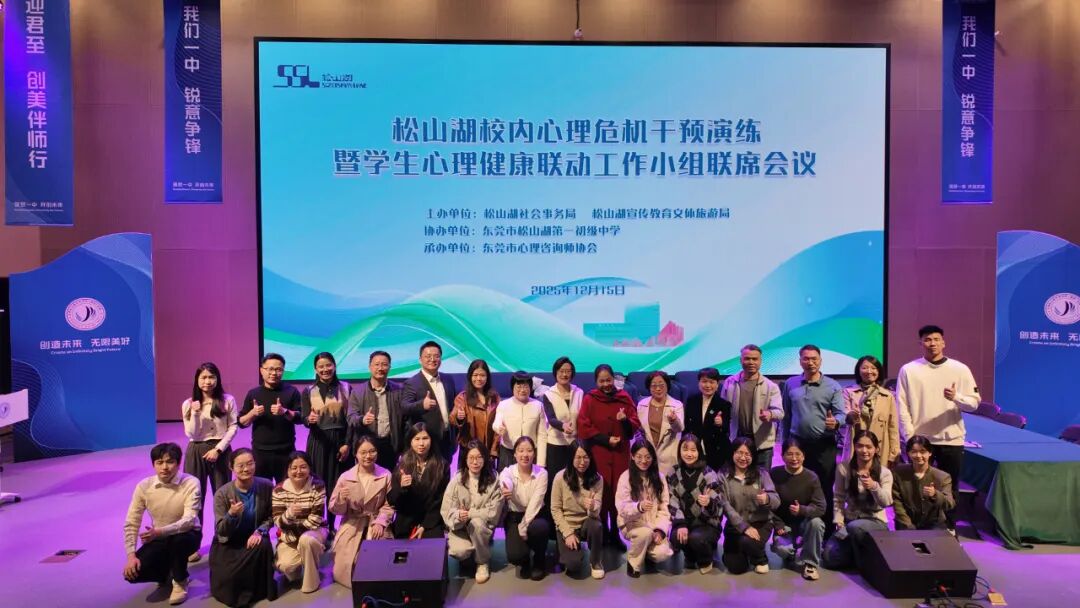 12月15日,松山湖校内心理危机干预演练暨学生心理健康联动工作小组联席会议在松山湖第一初级中学举行。活动由松山湖社会事务局、松山湖宣传教育文体旅游局联合主办,通过“实景演练+专家点评+联席会议”的形式,全方位提升园区中小学心理危机干预专业能力与多部门协同处置水平,为学生身心健康成长保驾护航。