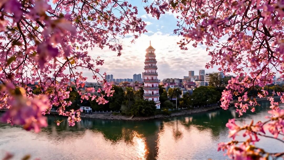 与灰瓦白墙的岭南民居相映