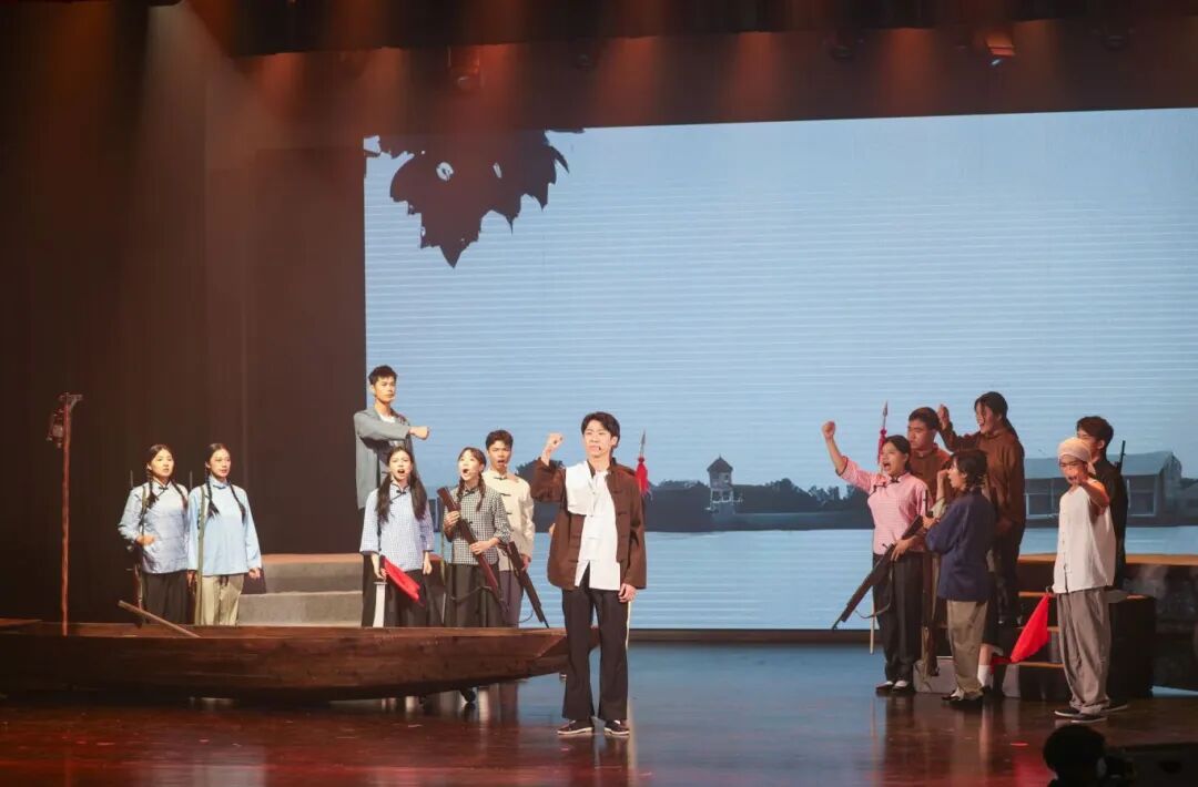 第一篇章“烽火岁月·红色记忆”,由广东东江纵队纪念馆、东莞职业技术学院大学生艺术团表演队、智能制造学院青马班成员带来情景演绎节目《础石》,以广东东江纵队革命烈士的真实事迹为蓝本,生动再现了东莞游击队员的铮铮铁骨以及为国为民的英雄气概。