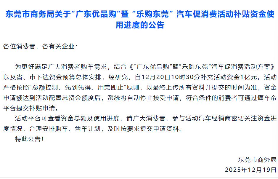 购车补贴追加1亿元!东莞人速戳申领指南→