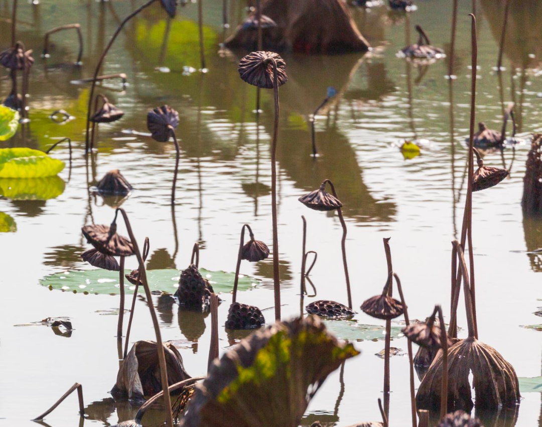 作为“中国荷花名镇”,莲湖风景区是必去的诗意之地。褪去盛夏华裳的桥头莲湖正上演着一场极具东方美学的谢幕礼。枯荷不再擎翠盖,却以遒劲的枝干在碧空下勾勒出万千禅意线条,正等待有心的你前来品味这幅水墨长卷里,“留得枯荷听雨声”的韵味。