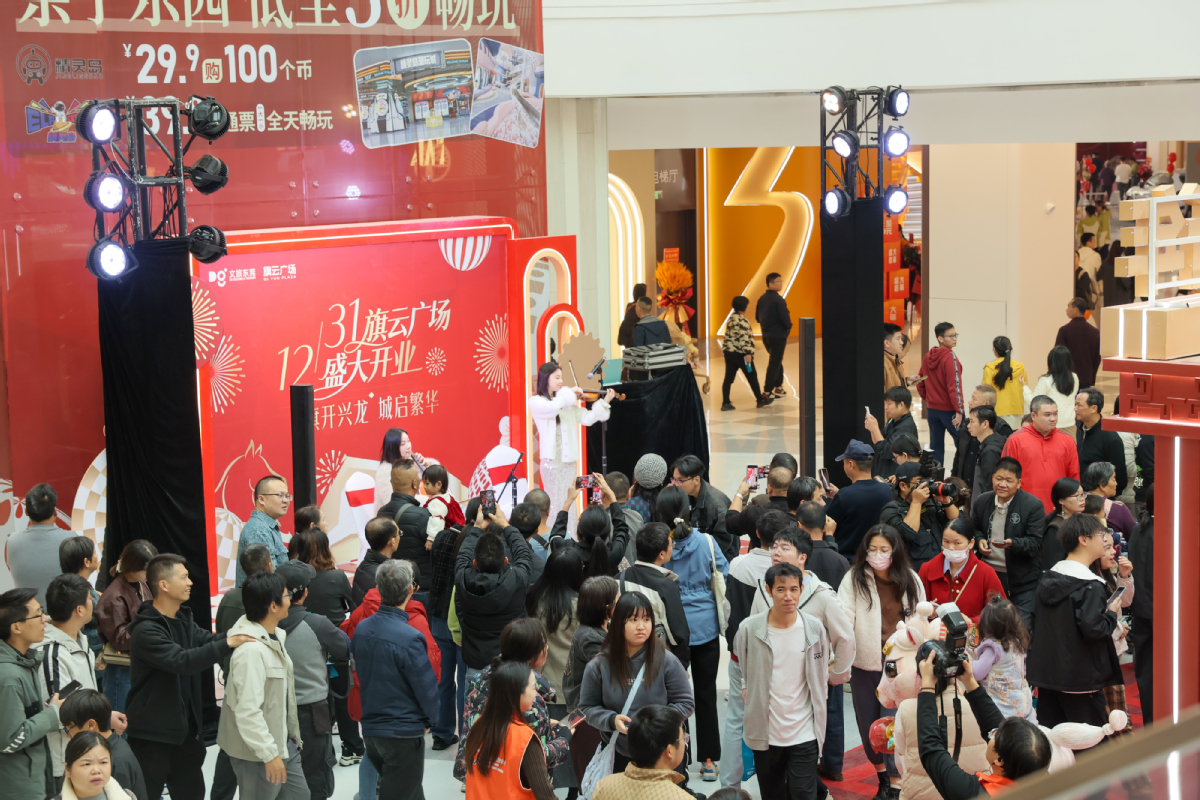 此外,2025年12月31日开业的旗云广场,作为东实集团打造的莞北片区规模最大TOD商业综合体,同步拉开“粤享暖冬 乐购东莞”石龙2026迎新消费季序幕。开业四天内,项目整体客流超62万人次、总销售额破2700万元,近20家品牌荣膺东莞区域销售榜首,超40家品牌跻身品类前三。其中鹏泰超市四天销售额突破600万元,登顶该品牌广东省销冠;新悦淘、卡玛王子等品牌均创下销售佳绩,项目更火速登上大众点评“石龙镇购物热门榜第一”。潮流活动与优惠福利叠加,让旗云广场成为跨年夜至元旦期间的消费热点。