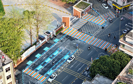 镇田小学通过完善防撞柱、隔离栏等交通安全设施,实现人车分流,并设置了彩虹斑马线,增添儿童元素,打造了凤岗首条儿童友好护学路,既守护了学生的安全,也进一步提高交通通行率。